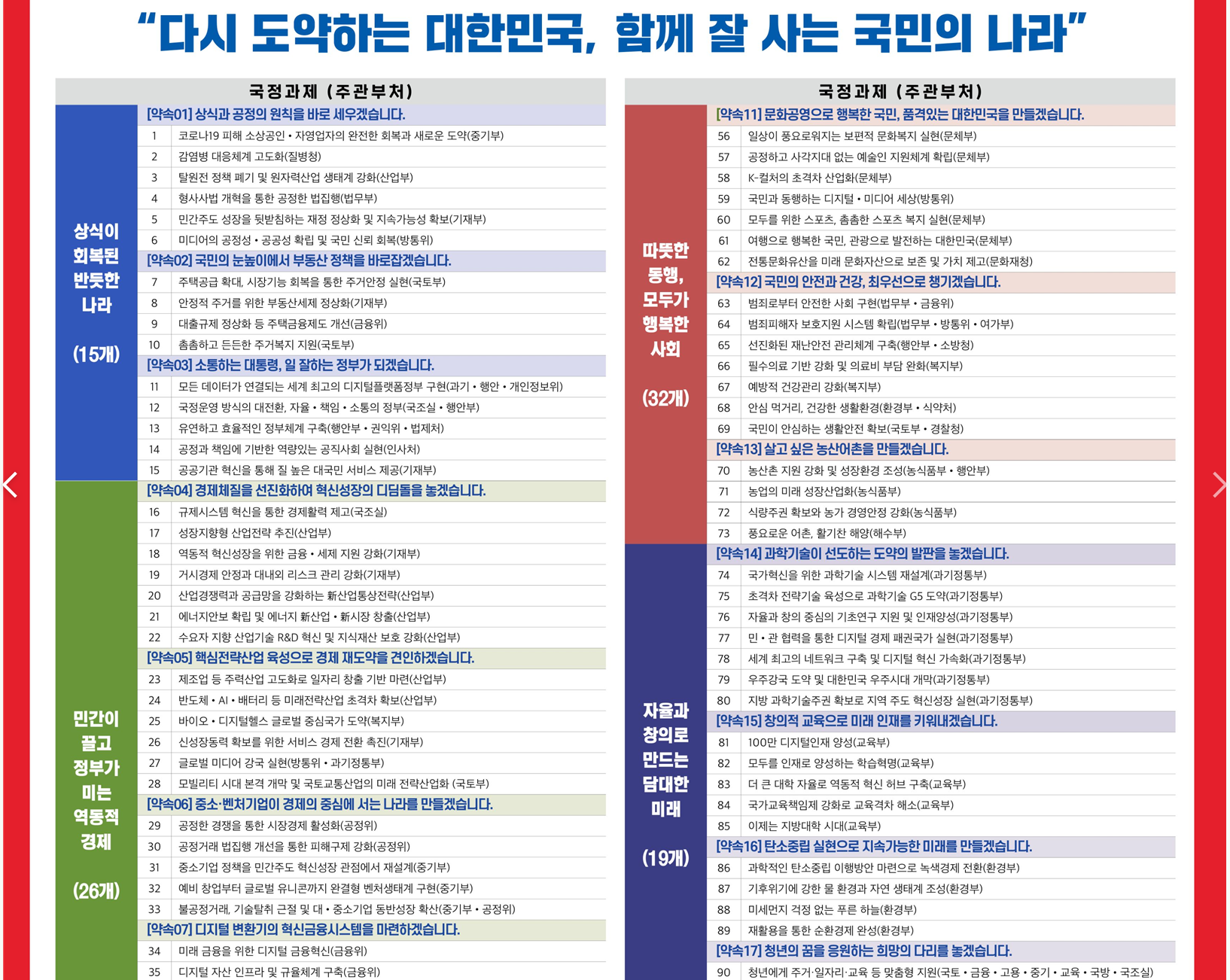윤석열 정부의 110대 국정과제 리스트 안내