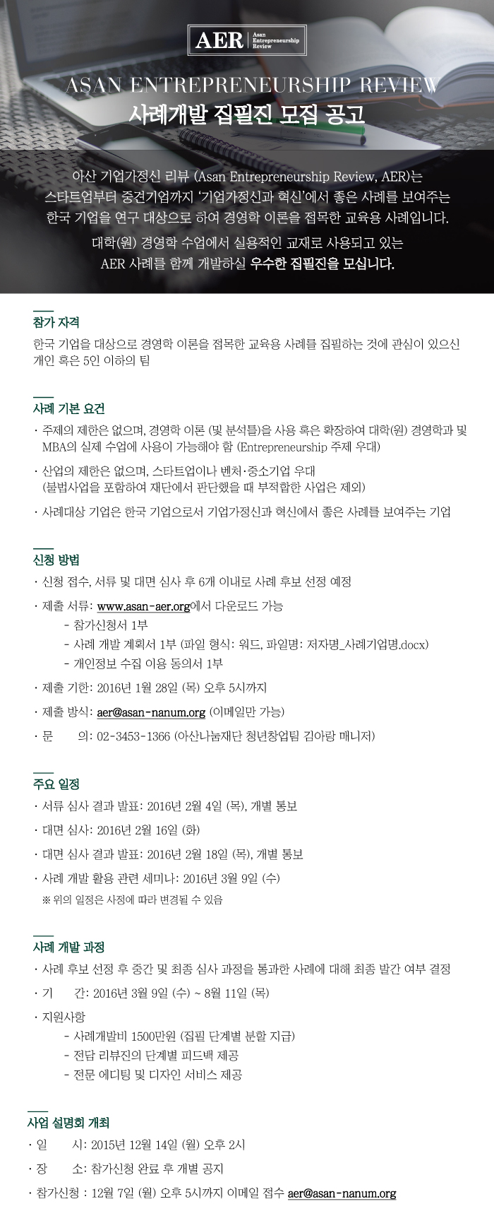 아산 기업가정신 리뷰(AER) 집필진 모집 공고
