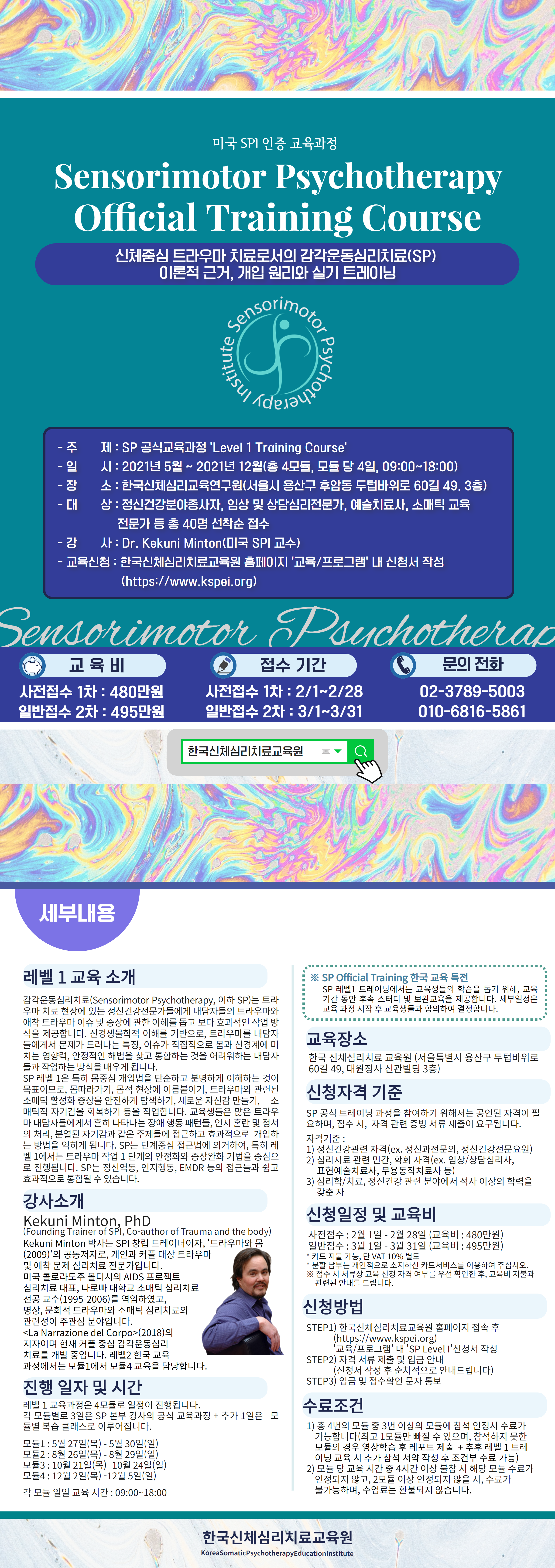 Sensorimotor Psychotherapy, 감각운동 심리치료, SP 전문가 과정 모집