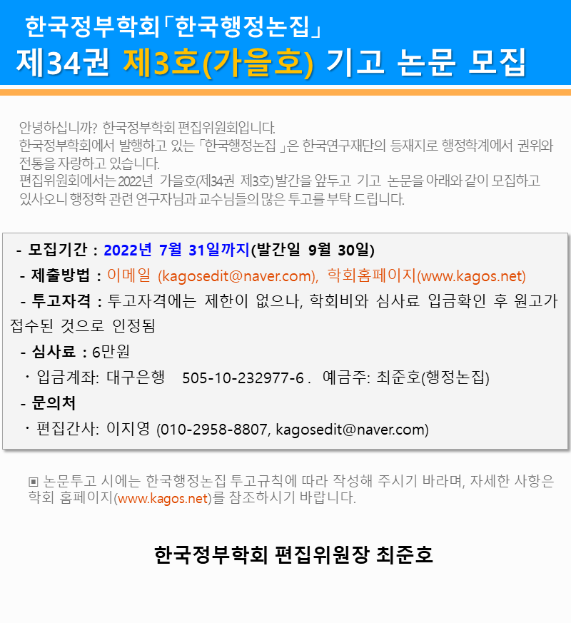 한국행정논집 34권3호 기고 안내-기간연장-]