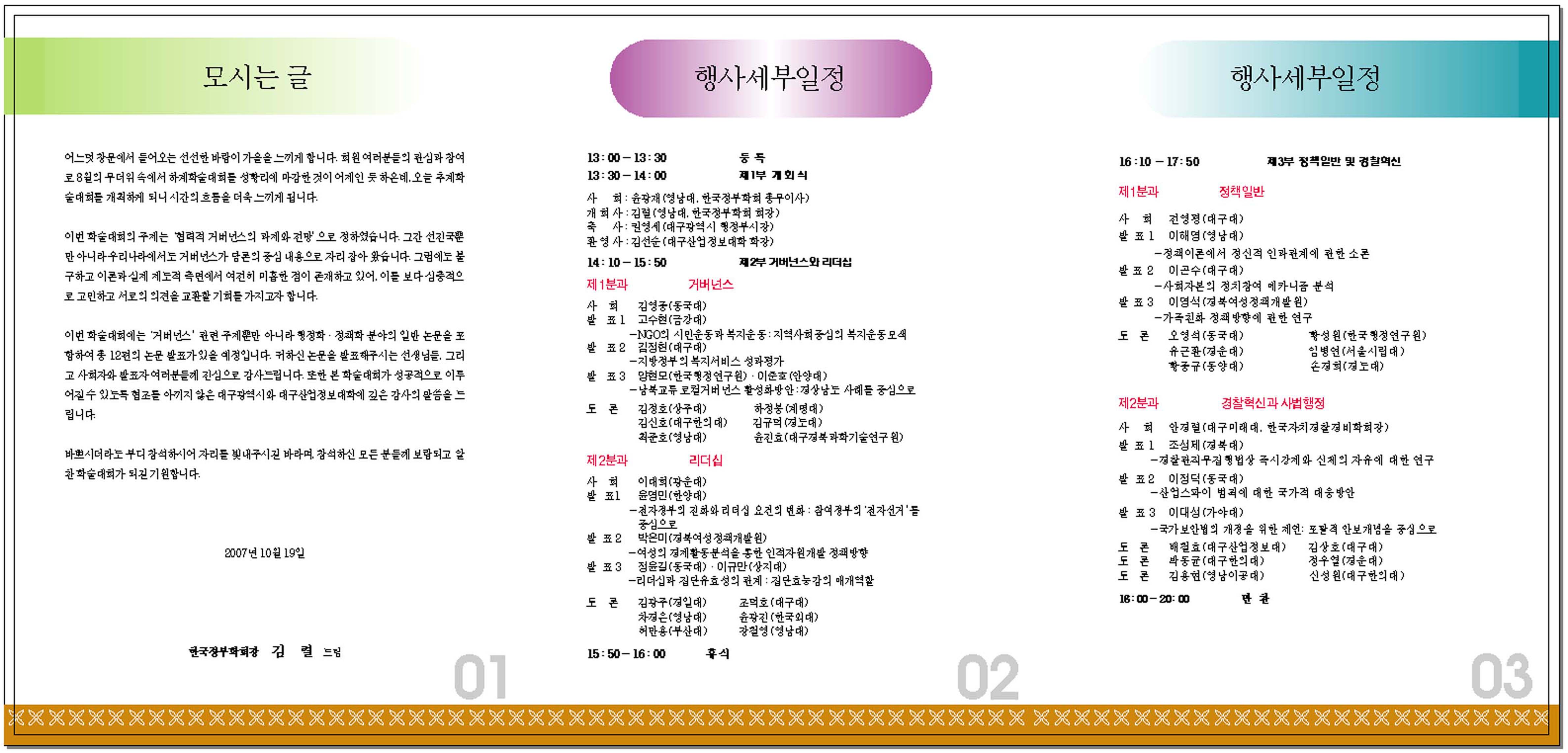 한국정부학회 추계학술대회가 대구산업정보대학(신비관: 중강당, 207호)에서