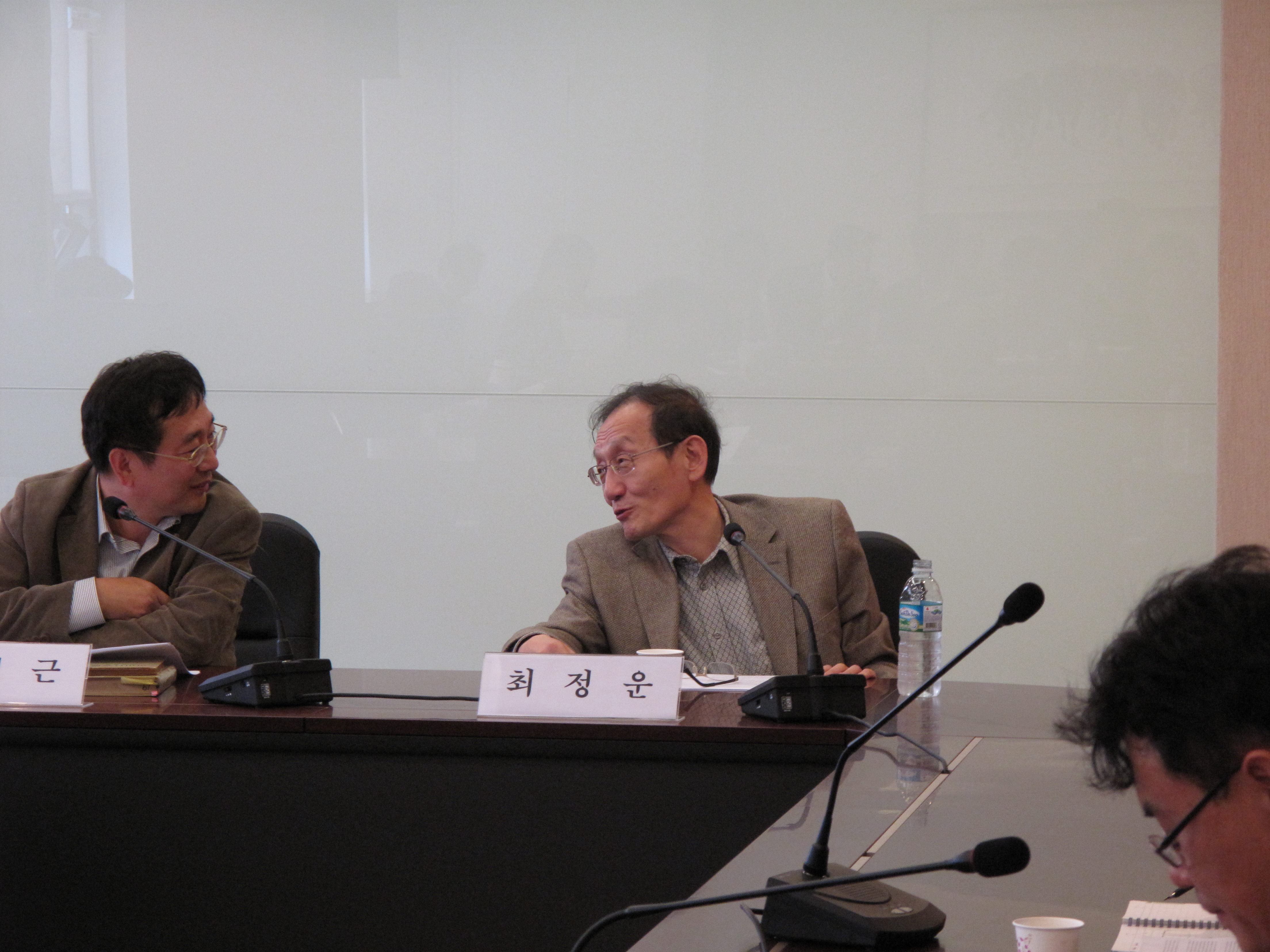 사회자 최정운 쌤과 담소를 나누는 김석근 쌤. 사회자와 이렇게 사이가 좋으면 안 되는디...