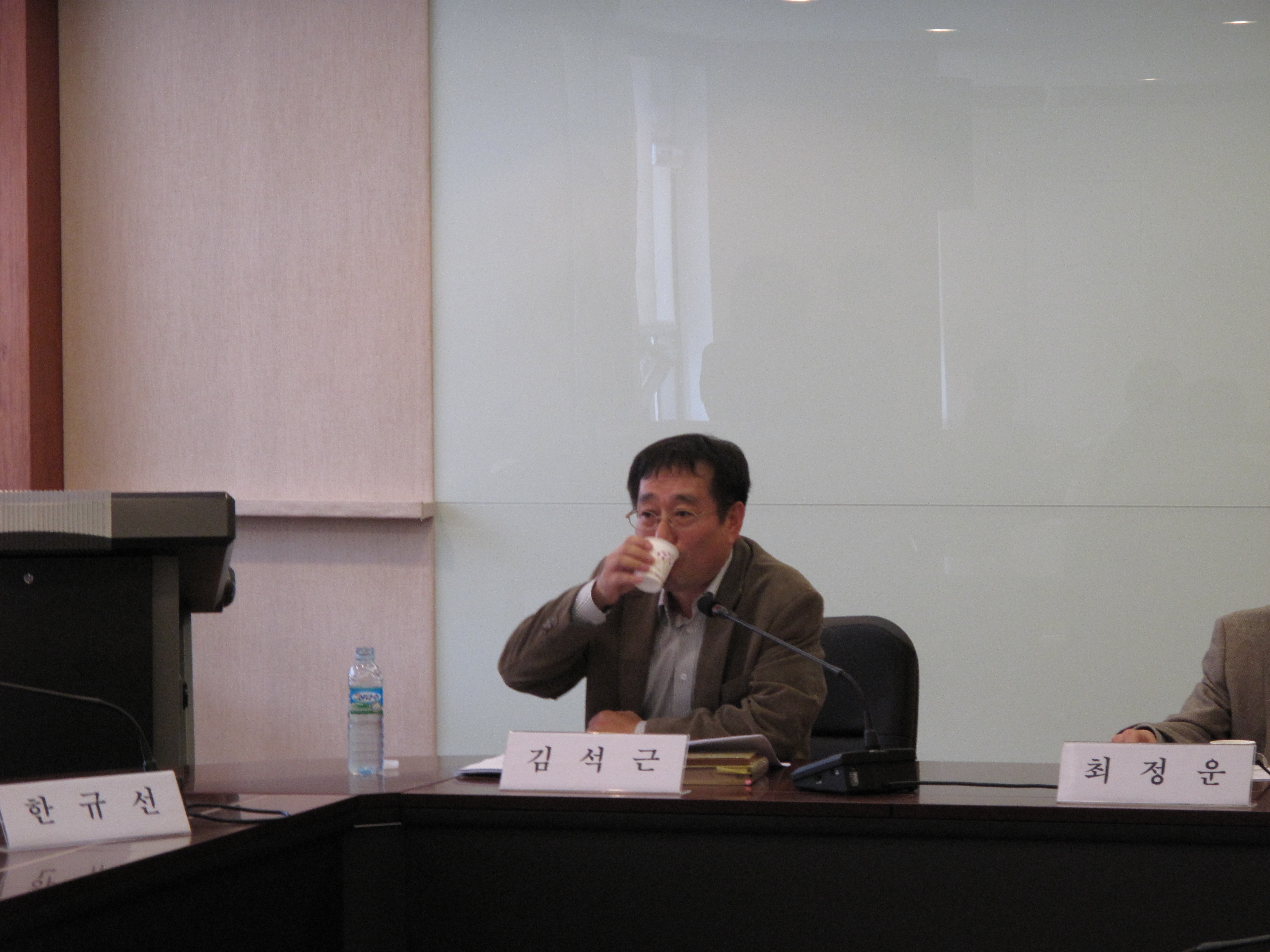 발표 시작 전에 물 마시는 김석근 쌤. 강호 학림의 고수들이 무섭긴 무섭죠.