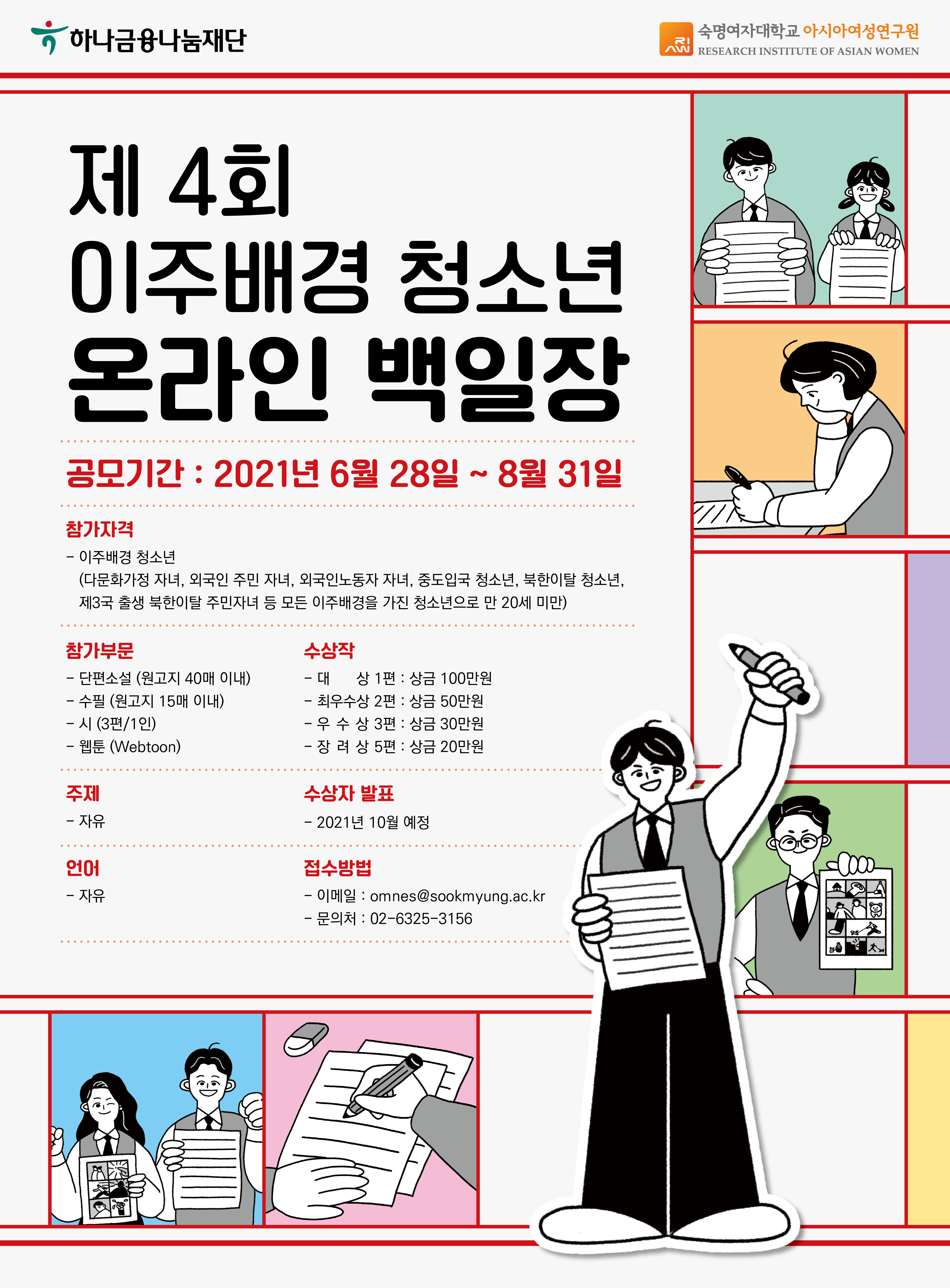 아시아여성연구원에서 <제4회 이주배경 청소년 온라인 백일장>을 개최하오니 많은 관심 부탁드립니다.