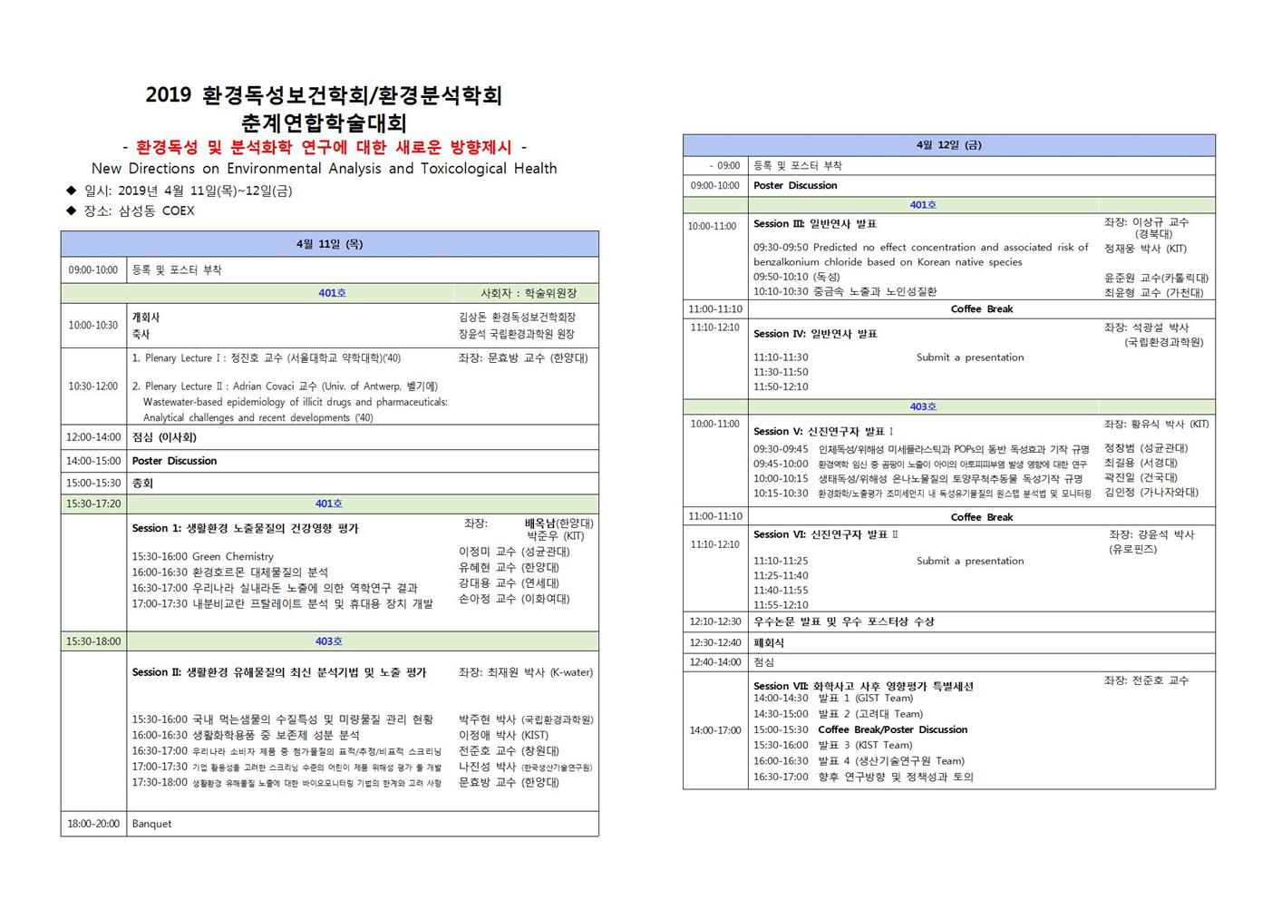 2019년도 환경독성보건학회/환경분석학회 춘계연합학술대회가