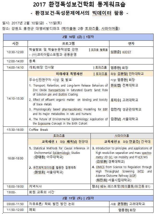 2017 환경독성보건학회 동계워크숍 프로그램 업데이트