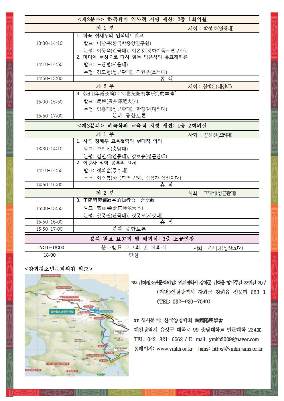 '양명학회' 팻말을 들고 계실 예정이오니 정차장소에 관한 문의와 시간 안내에 도움을 받으시길 바랍니다.