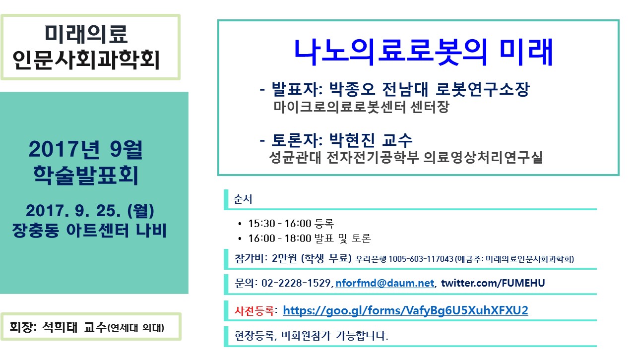 l 참가비: 2만원 / 우리은행 1005-603-117043 (예금주: 미래의료인문사회과학회)