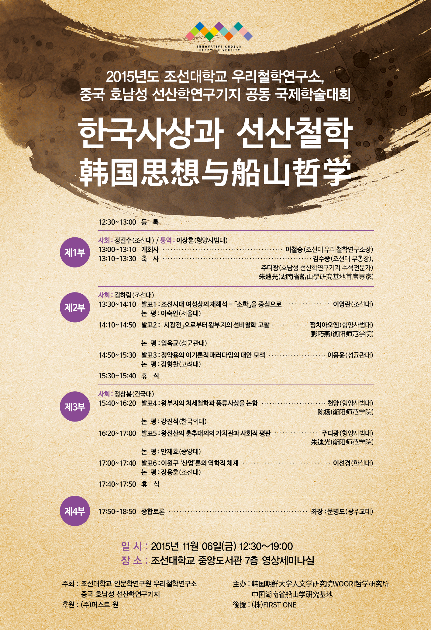주최:조선대학교 인문학연구원 우리철학연구소, 중국 호남성 선산학연구기지
