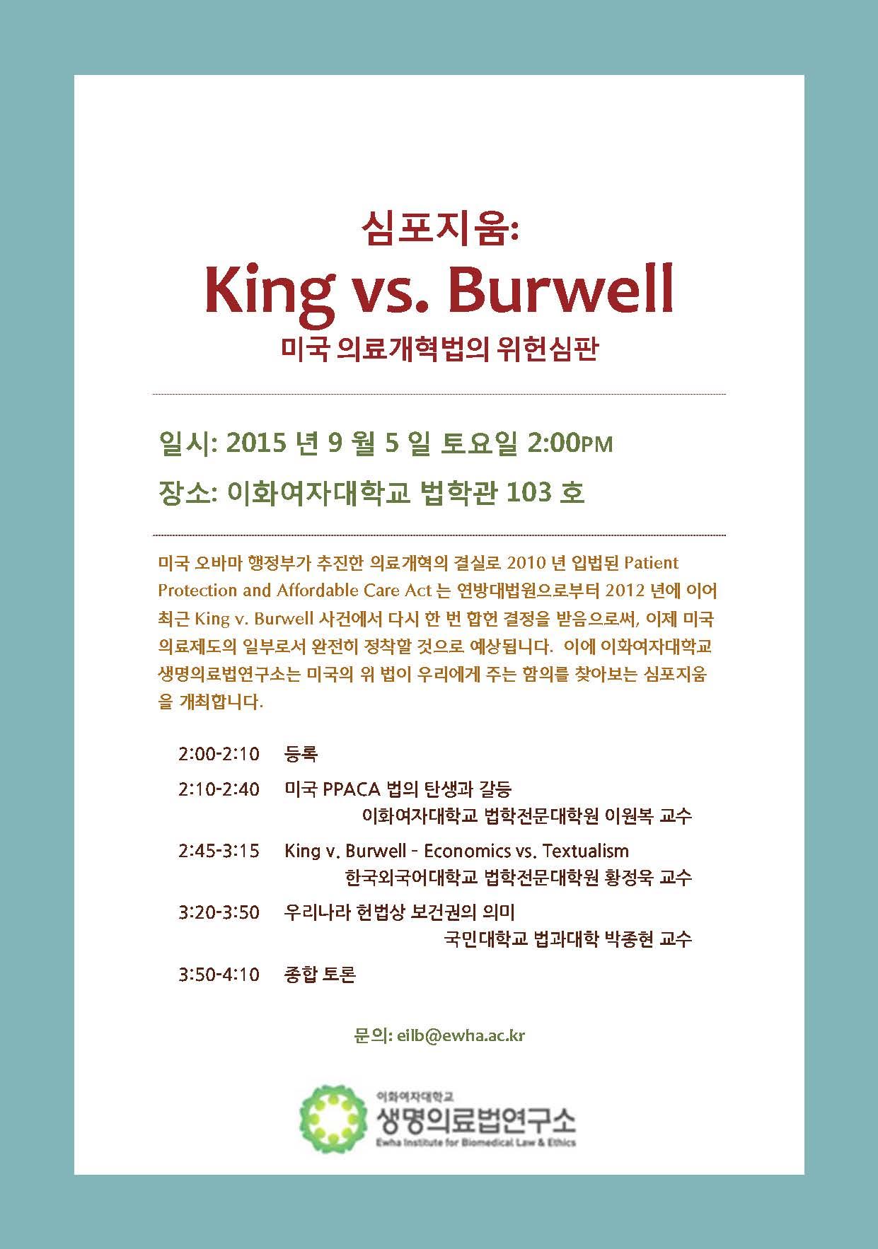 이화여자대학교 생명의료법연구소 심포지움 "King vs. Burwell 미국 의료개혁법의 위헌심판"