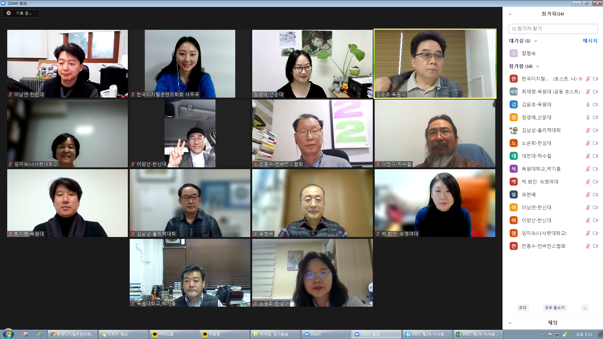 2021년도 한국디지털콘텐츠학회 제2차 이사회가 아래와 같이 진행되었습니다.
