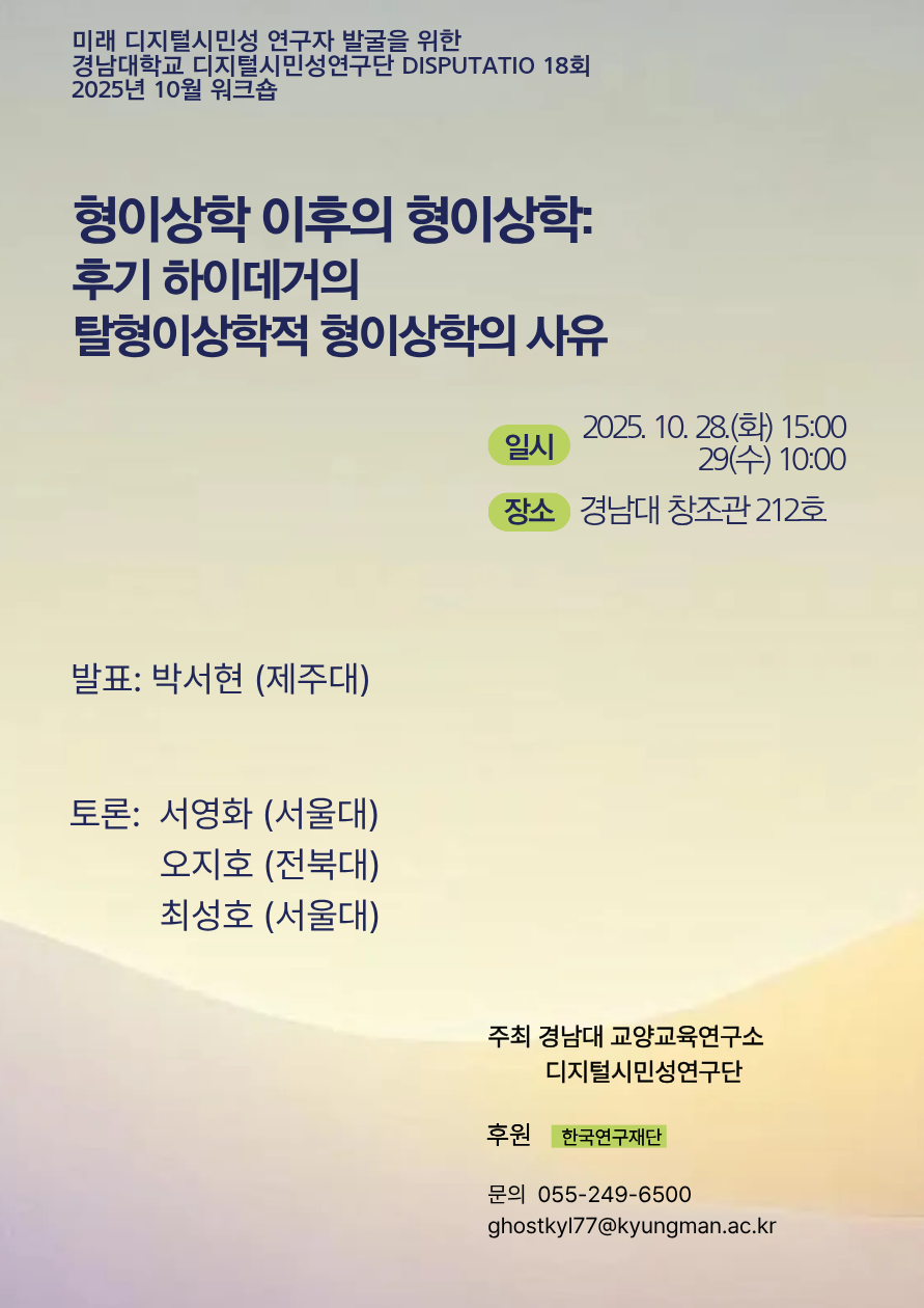 - ‘경남대학교 교양교육연구소 디지털시민성연구단’에서 진행하는 <제18회차 Disputatio>에 학내 여러분들을 초대합니다.