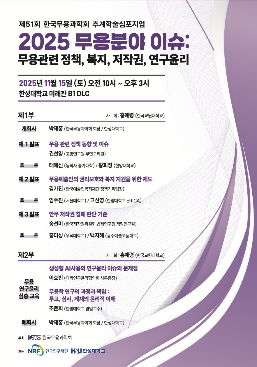 '한국무용과학회 제51회 추계학술심포지엄 및 무용연구윤리 심층교육'