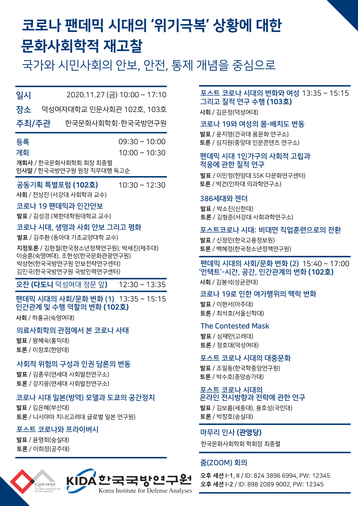 •오후세션I-1: 코로나 팬데믹 시대의 사회/문화 변화 1 (13:35~15:15)