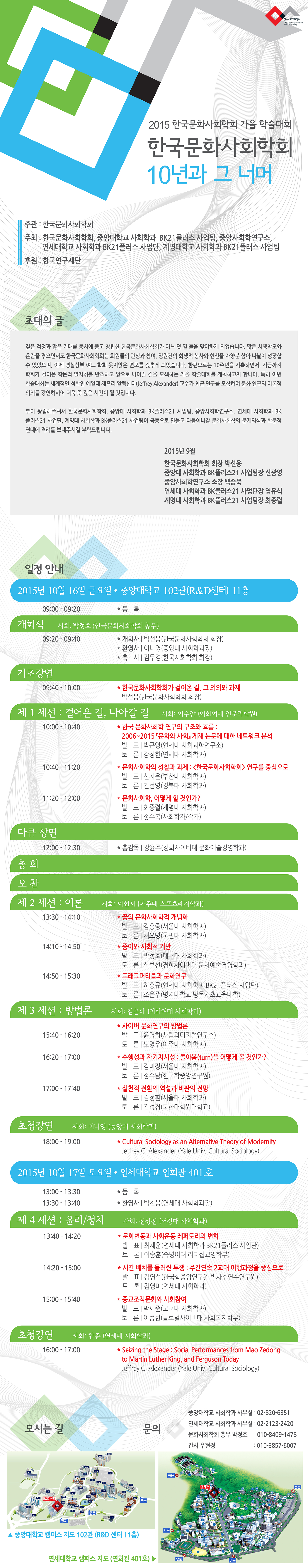 주최: 한국문화사회학회, 중앙대학교 사회학과 BK플러스21 사업팀,