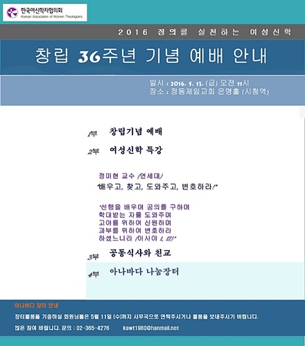 여신협 창립 36주년 기념예배 안내