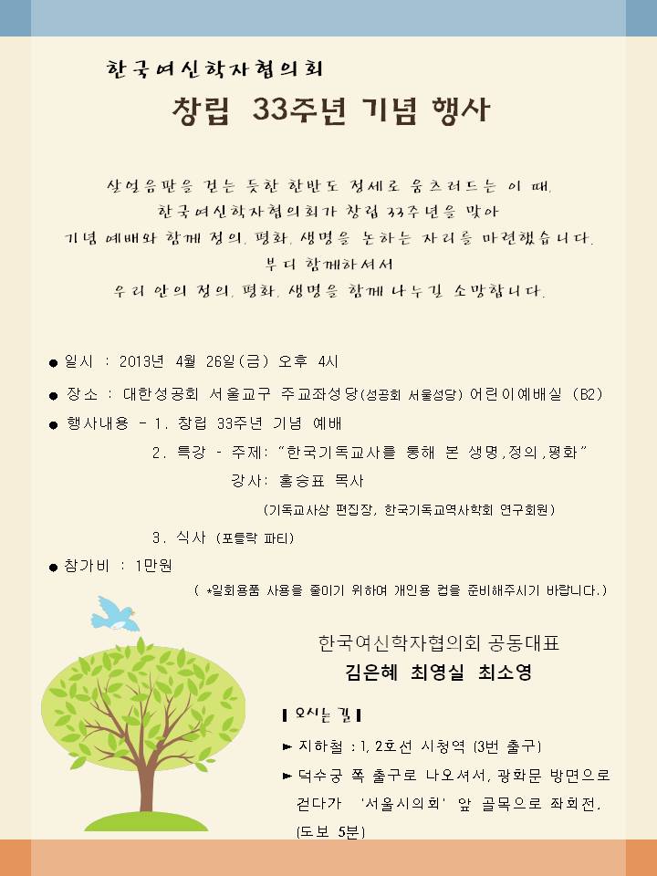 여신협 창립 33주년 기념 행사 초청