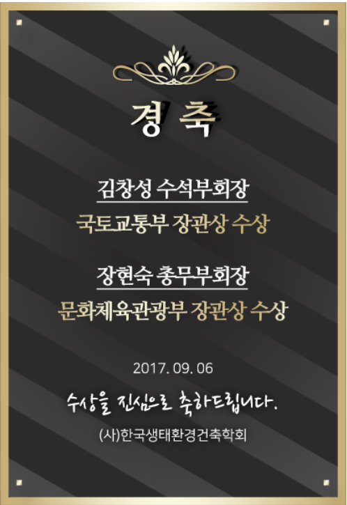 ※경축※ 김창성 수석부회장/장현숙 총무부회장 장관상 수상